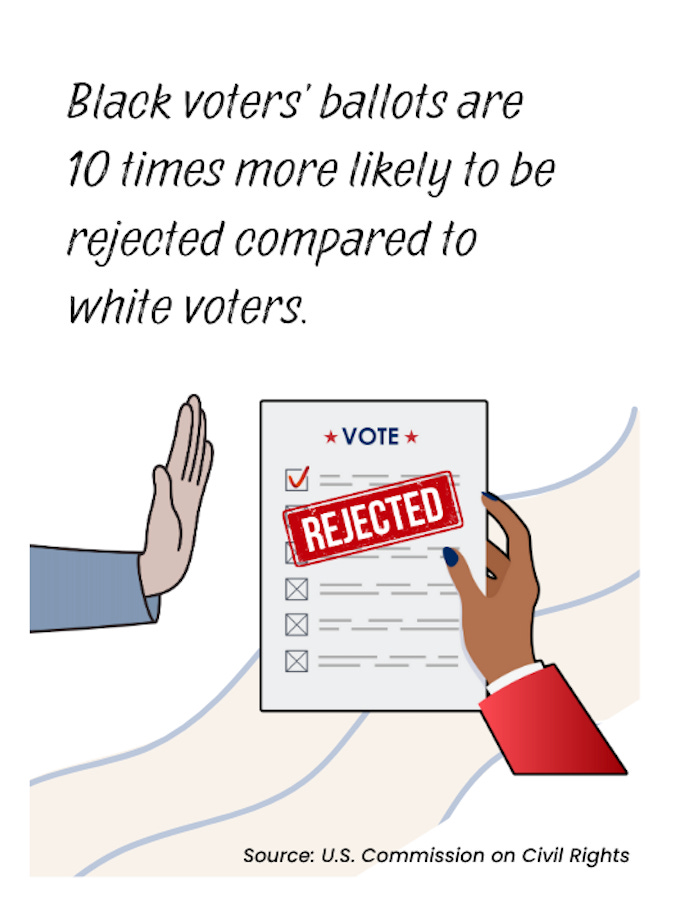 Black voters’ ballots are 10 times more likely to be rejected compared to white voters.