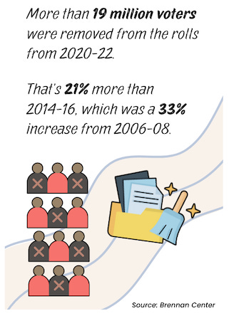 Voter purges disproportionately affect Black and brown communities due to flawed policies and inaccurate data about felony convictions and citizenship status.